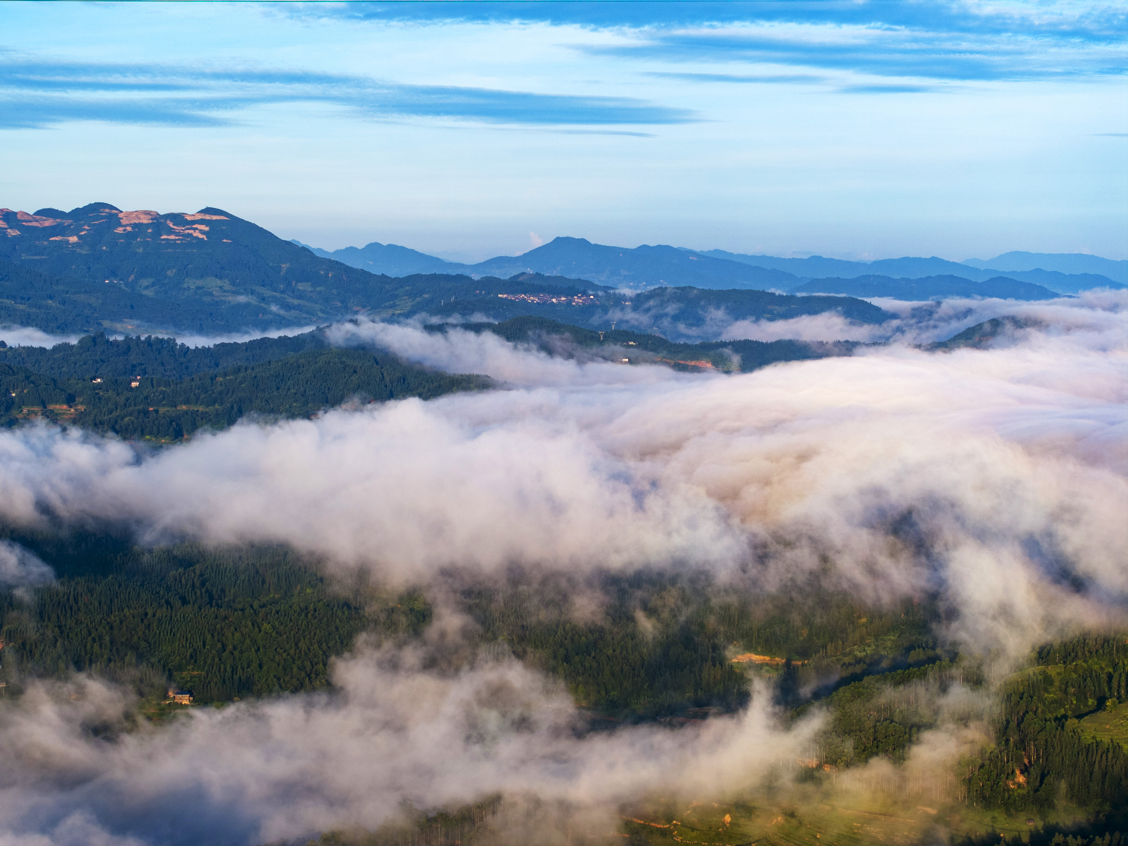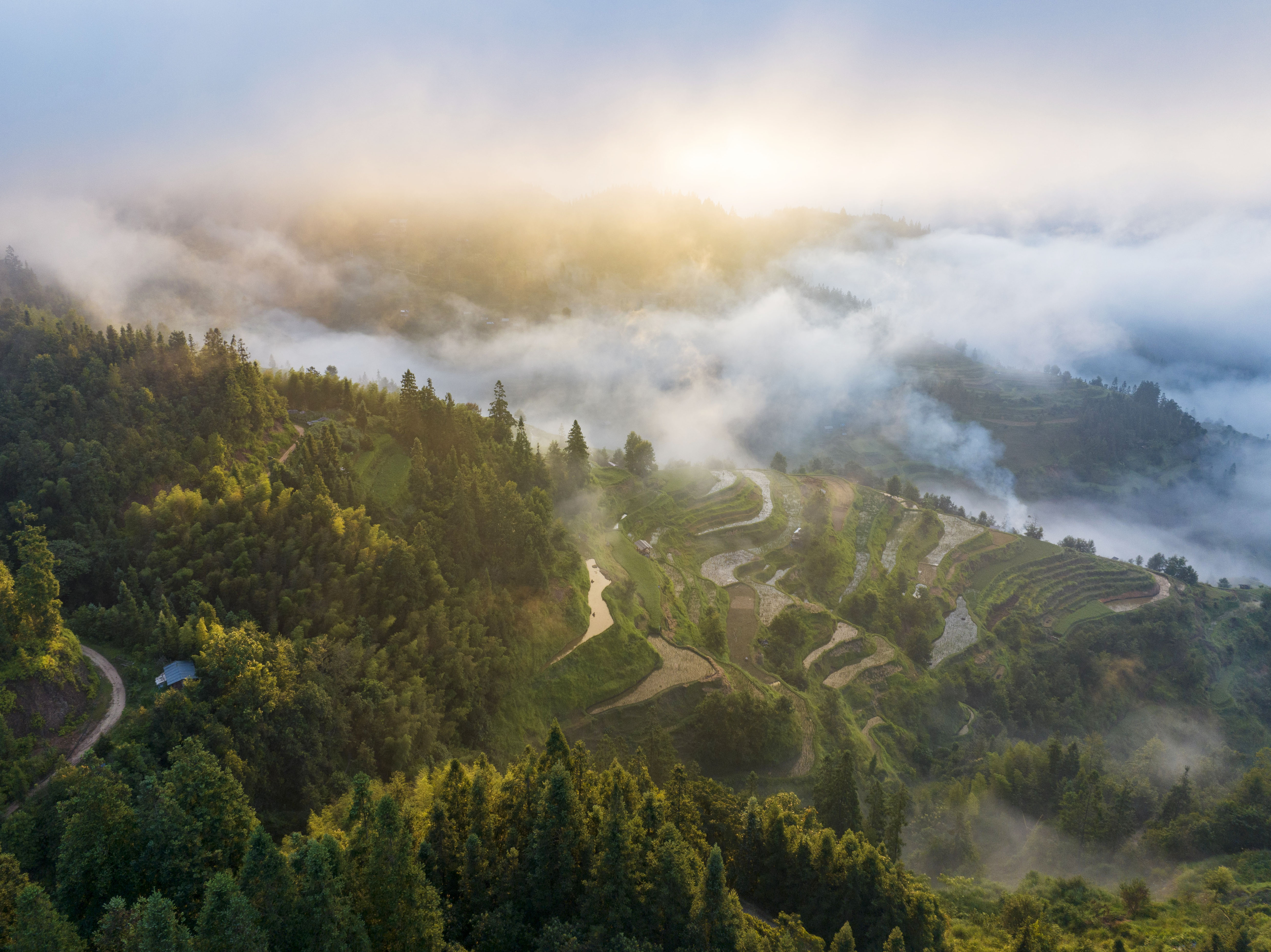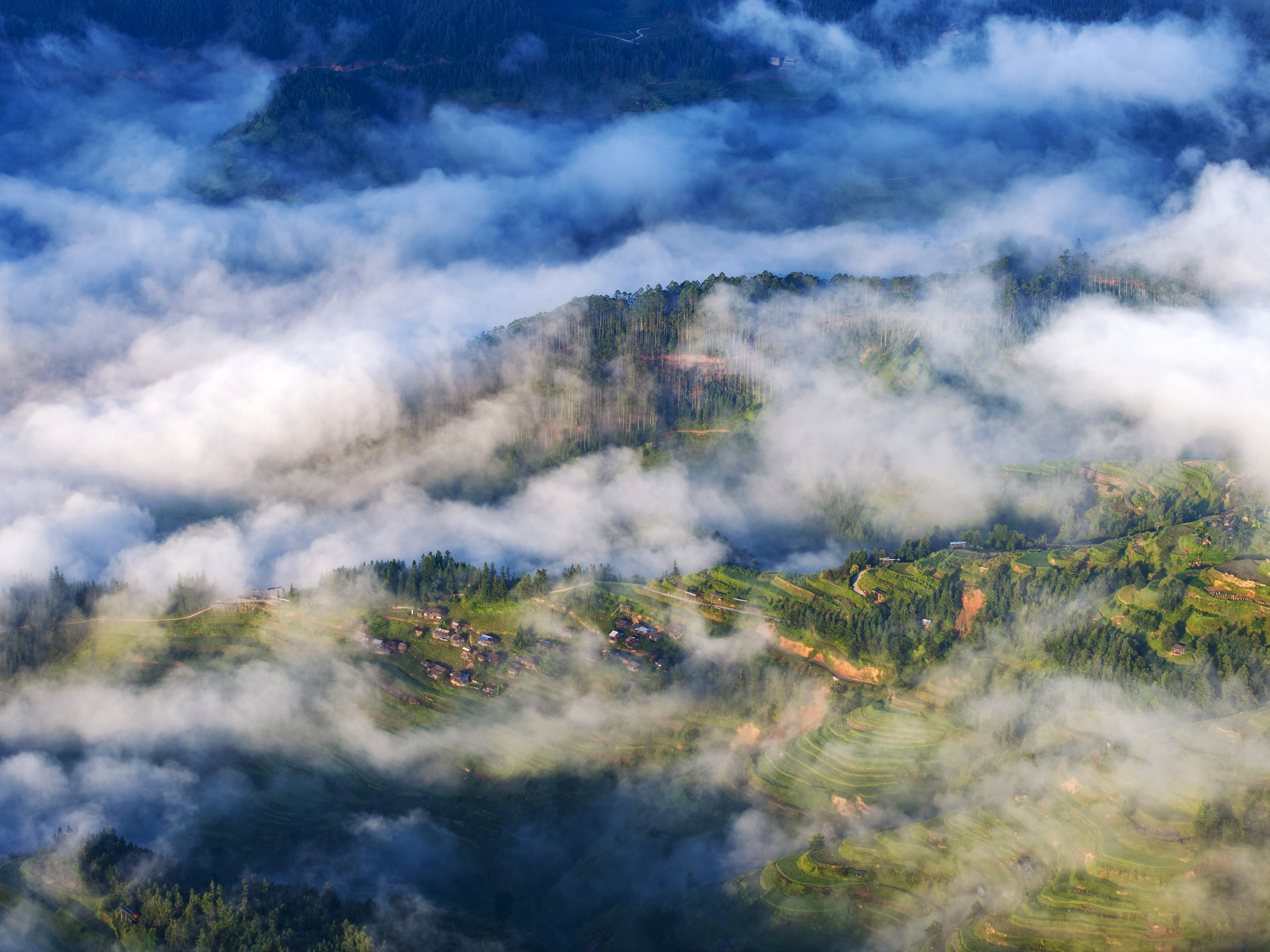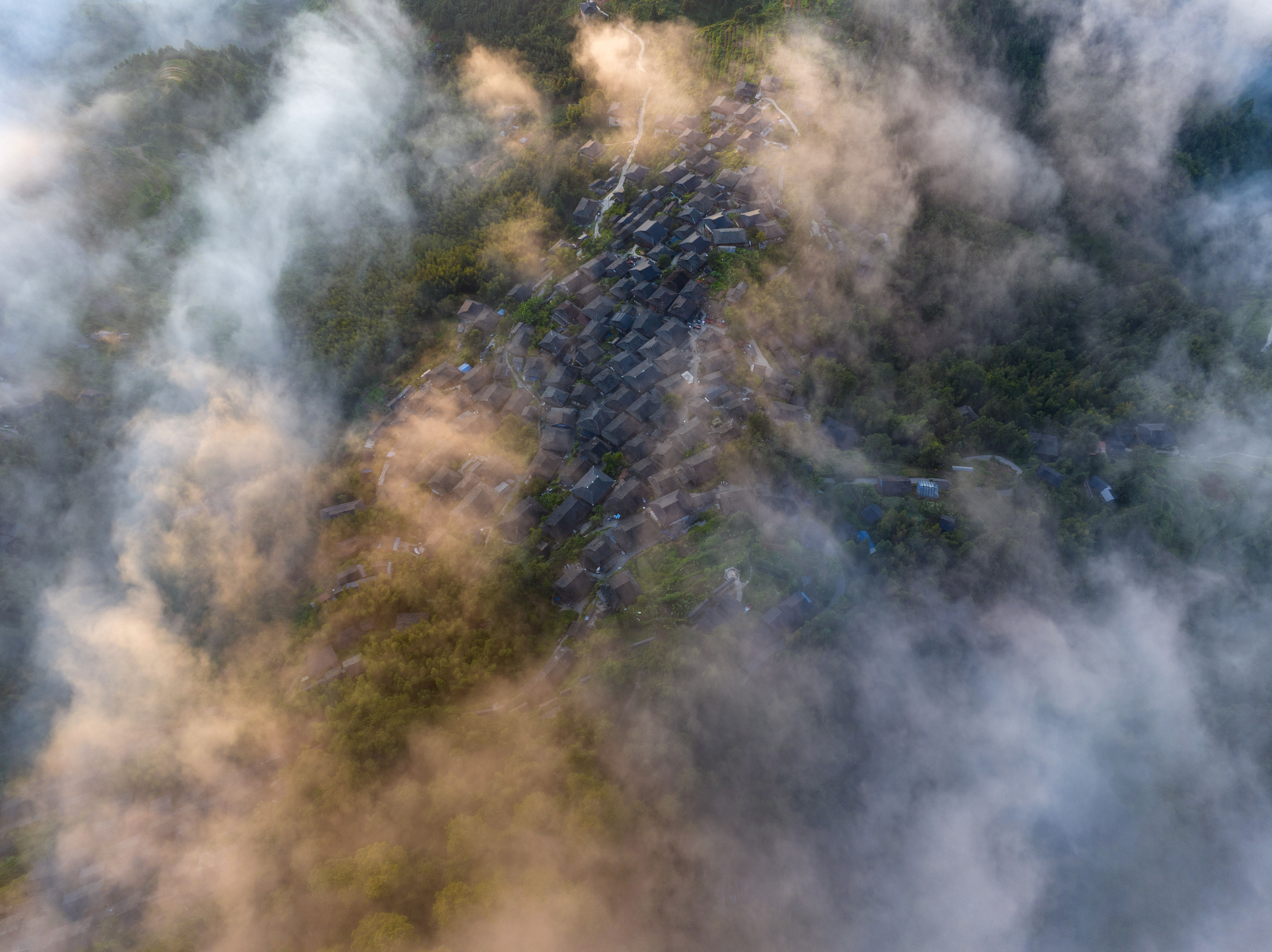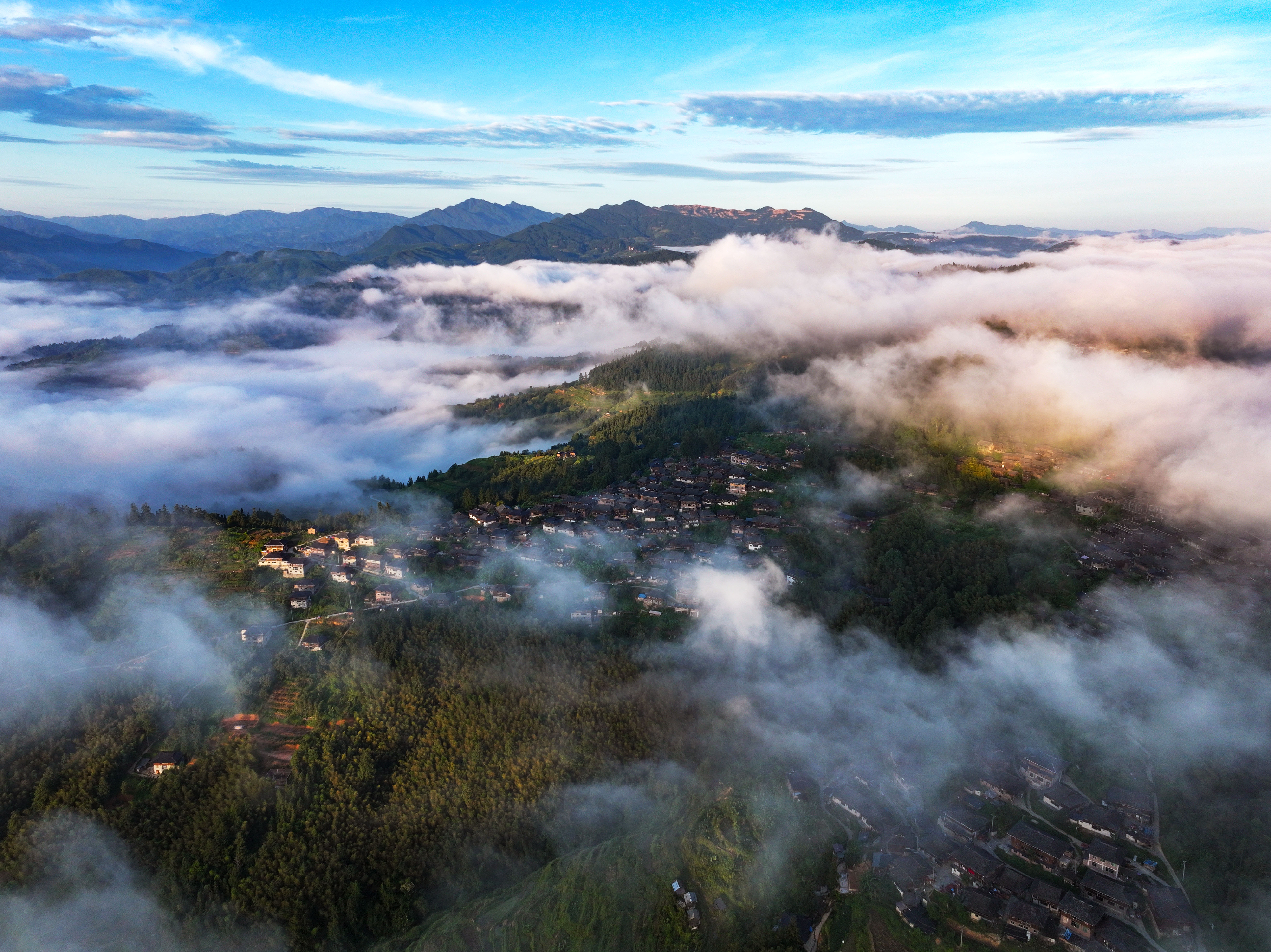 金秋時(shí)節(jié),貴州省黔東南苗族侗族自治州從江縣丙妹鎮(zhèn)岜沙苗寨迎來晨曦初露的時(shí)刻,云海似輕柔的紗幔緩緩漫過山間,將苗寨的民居、錯(cuò)落的田園、蒼翠的山林與蜿蜒的公路巧妙融合,共同繪就了一幅流動(dòng)的仙境畫卷。
