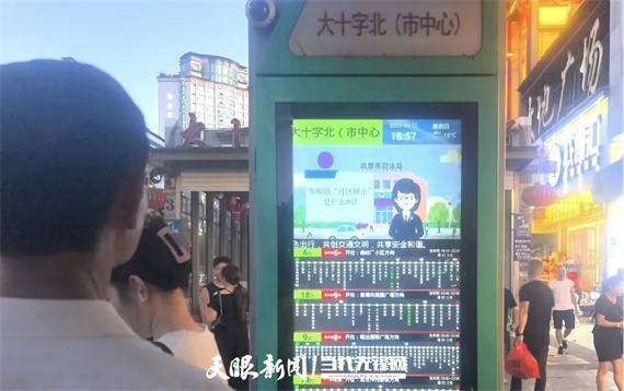 在大十字公交站,電子屏正滾動播放《社區(qū)矯正法》解讀視頻,畫面里的情景劇用真實案例講解法律條文。