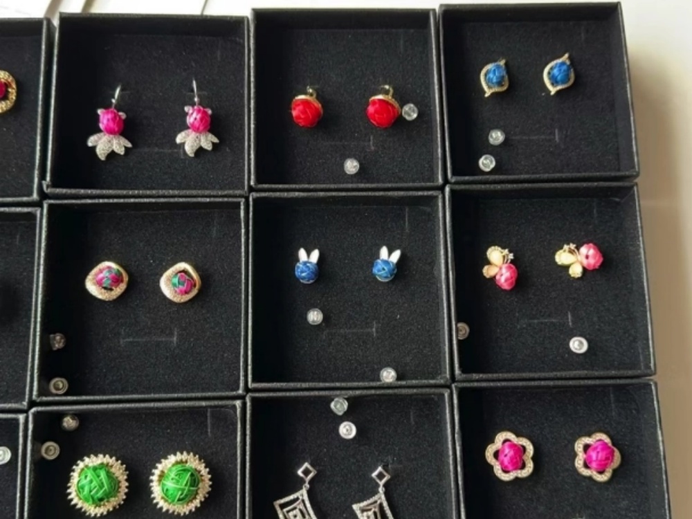 返鄉(xiāng)回來的這11年里,楊杜娟給竹編注入了新的元素,從農(nóng)用產(chǎn)品發(fā)展到燈具、杯具、家具等,而今年又從市場的發(fā)展前景上找到新的突破口,將編織技藝解構(gòu)重組:提取苗家蝴蝶媽媽圖騰化作胸針主體、用侗族建筑榫卯結(jié)構(gòu)固定耳墜,甚至銀飾的鏨刻工藝融入竹編……這些單價29至49元的文創(chuàng)產(chǎn)品,不僅復(fù)購率激增,更讓單件作品時薪從5元躍升至50元。