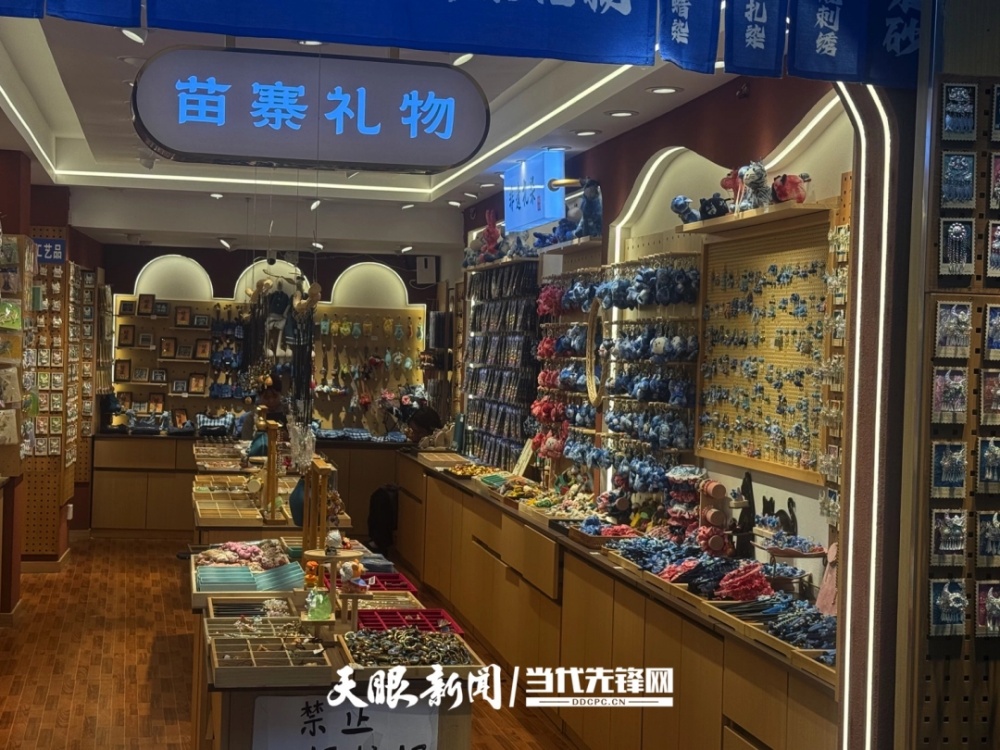 在西江千戶苗寨,文創(chuàng)店如雨后春筍般出現(xiàn)。記者走進(jìn)一家文創(chuàng)店,只見900多件商品琳瑯滿目,從衣服、帽子、包包到筆記本應(yīng)有盡有。