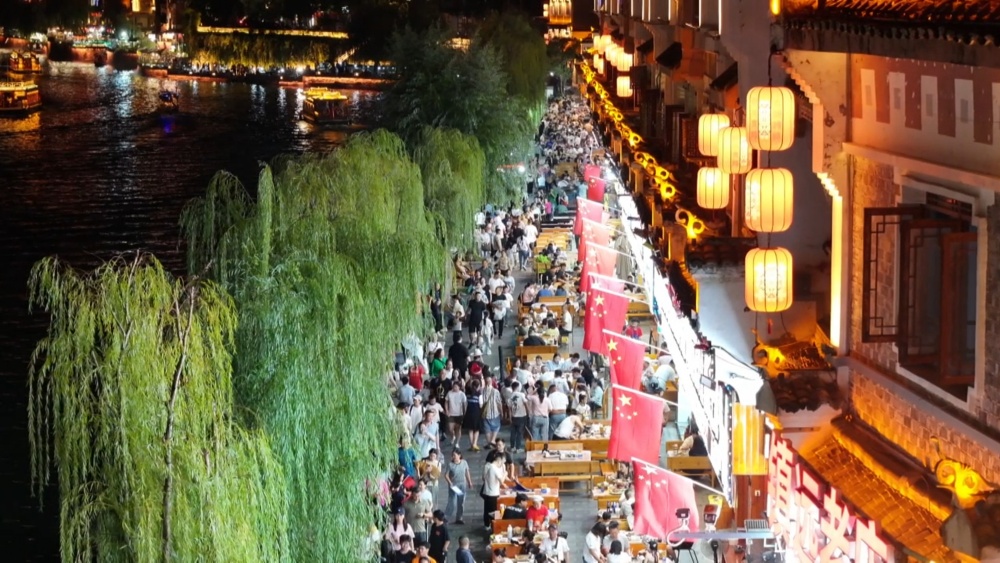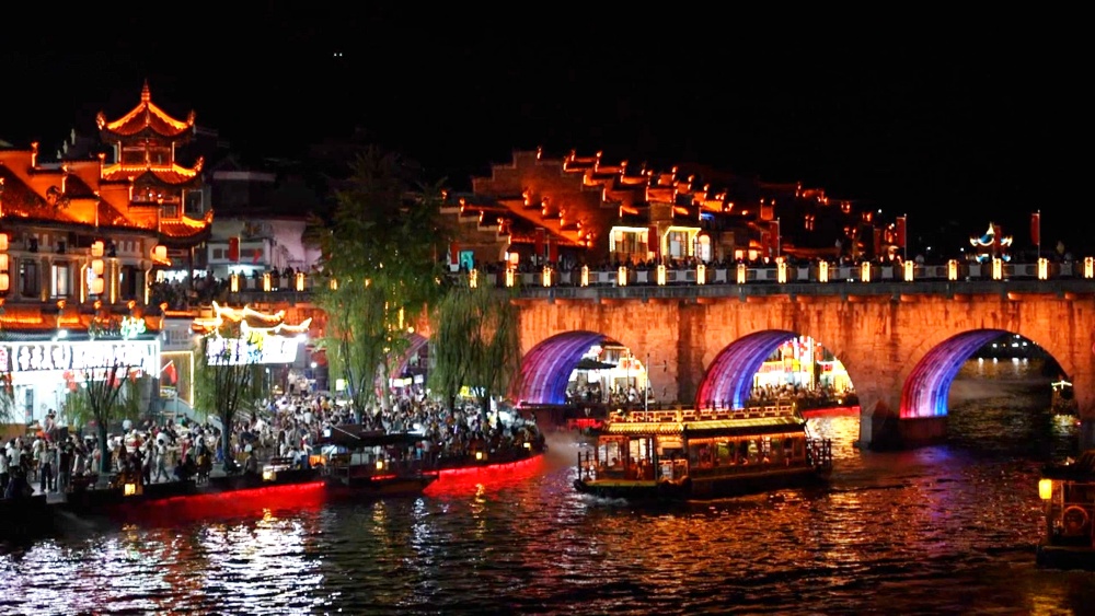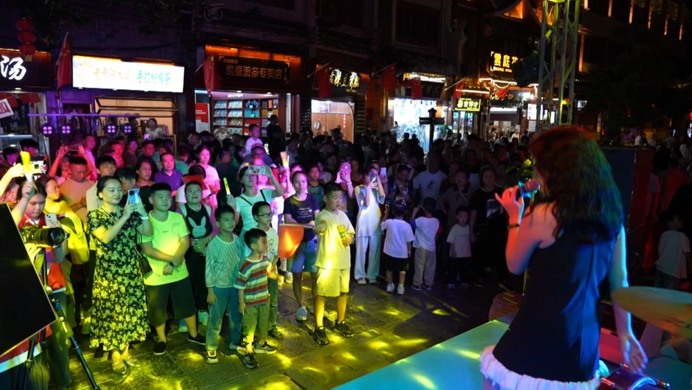 夜幕降臨后,古城“夜經濟”活力迸發(fā),水上游項目前游客排起長隊,夜市與文化展演深度融合,形成吃、住、游、購、娛一體化消費場景。路邊演唱會、非遺展演等特色活動應接不暇,讓游客在古城漫游中感受地域風情。