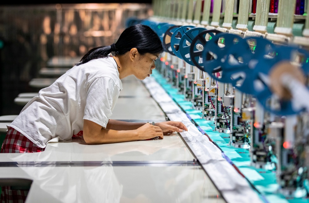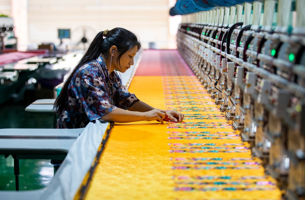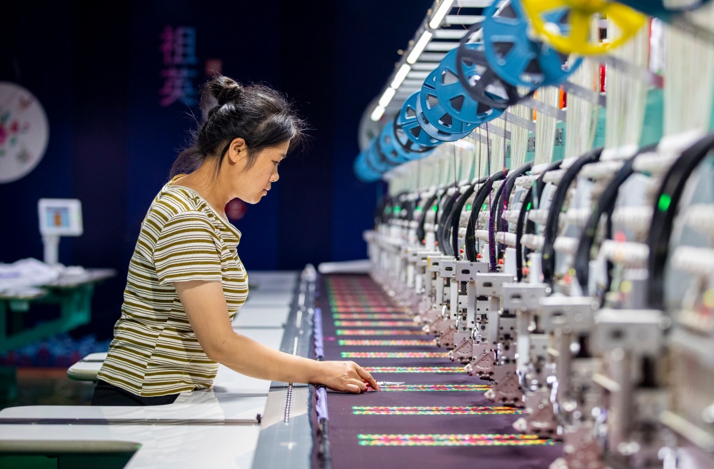 2025年10月8日,國慶中秋假期的最后一天,從江縣一家民族刺繡企業(yè)生產(chǎn)車間內(nèi)一派繁忙景象,工人們在生產(chǎn)線上剪線頭、穿針、接線等趕制訂單。
