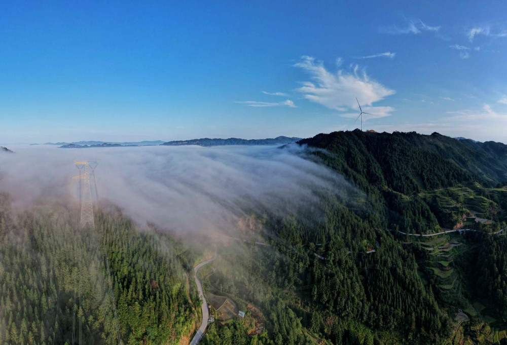 時下,在貴州省從江縣高增鄉(xiāng)美德村,風力發(fā)電機與青山、侗寨相映成趣,構成一幅美麗的秋日畫卷。近年來,從江縣圍繞美麗鄉(xiāng)村建設整體規(guī)劃布局,不斷完善鄉(xiāng)村公共基礎設施,著力提升村容村貌,改善農(nóng)村人居環(huán)境,優(yōu)化發(fā)展富民生態(tài)產(chǎn)業(yè),繪就出一幅“鄉(xiāng)村美、產(chǎn)業(yè)興、百姓富”的鄉(xiāng)村振興新圖景。