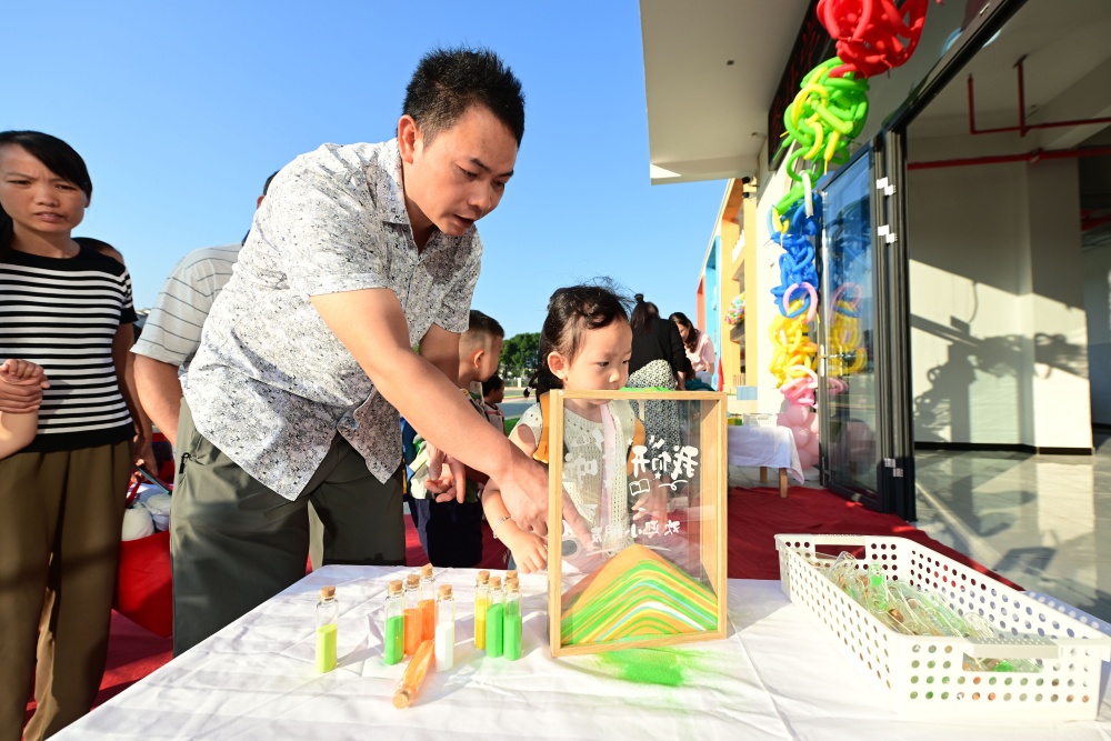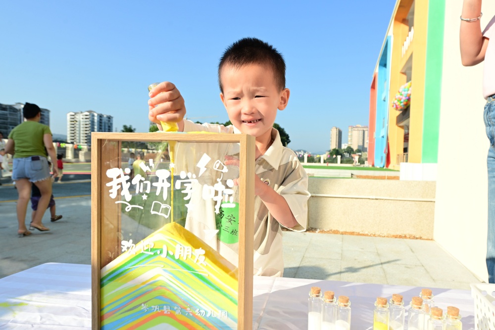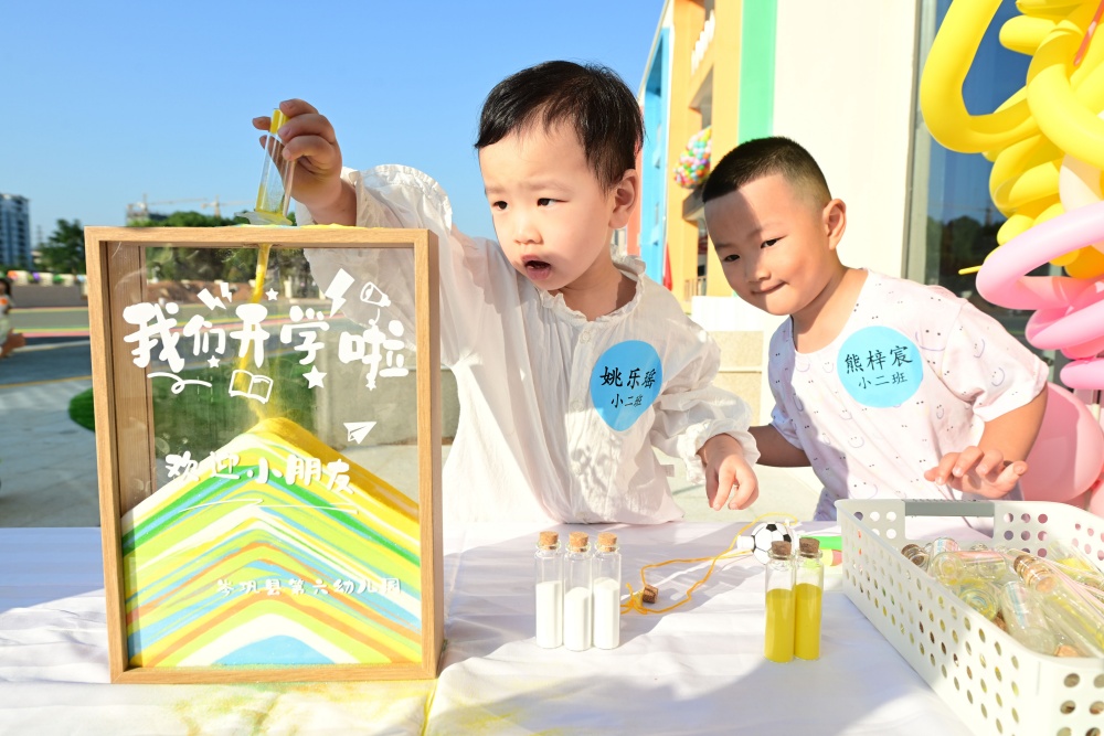 在學(xué)校大門口,小朋友走過紅地毯,參與“聰明伶俐”“茁壯成長”的跨越道具趣味互動,積極參與開學(xué)主題的沙畫創(chuàng)作,通過往彩色沙堆中倒沙子的方式,開啟新學(xué)期的校園生活,充滿了儀式感,是幼兒園為迎接小朋友們開學(xué)精心設(shè)計的互動環(huán)節(jié)。