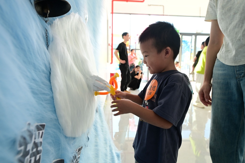 在卡通抽獎區(qū)前則排起了小小的長隊,奧特曼、小兔子、小熊等卡通玩偶獎品從卡通布偶肚中抽出,抽到獎品的孩子歡呼雀躍,沉浸在奇妙世界里。