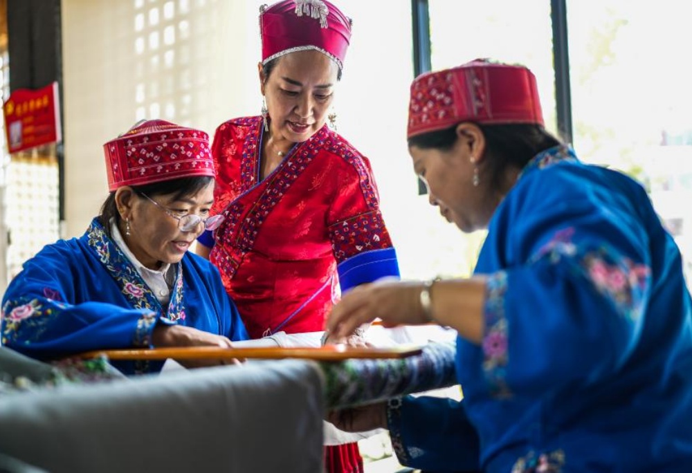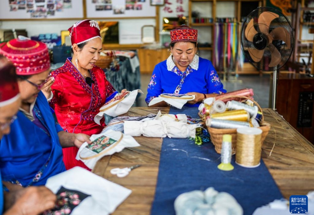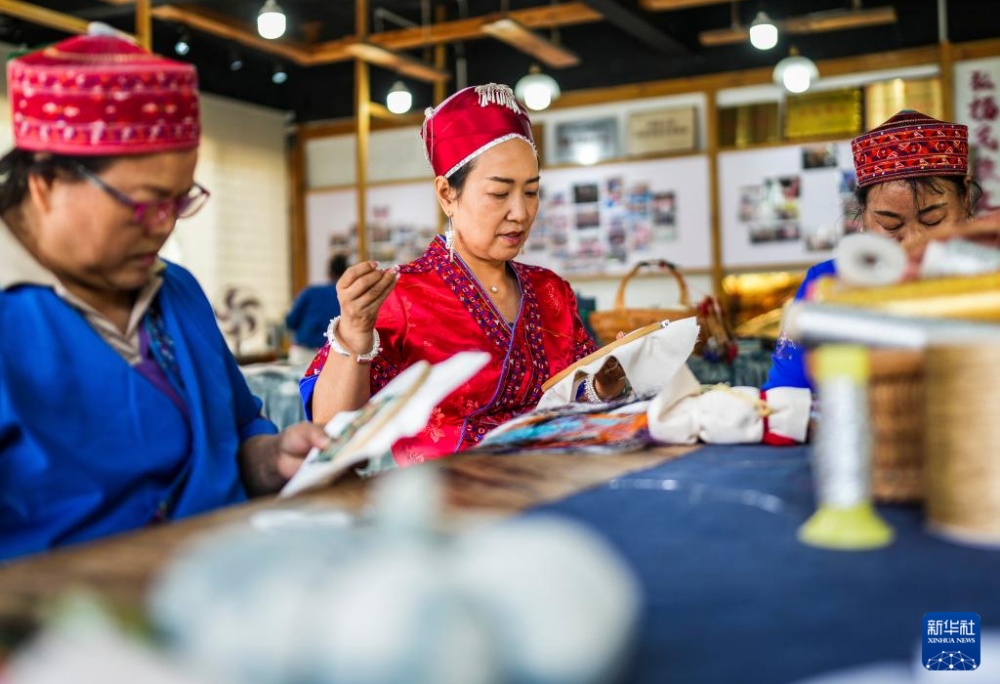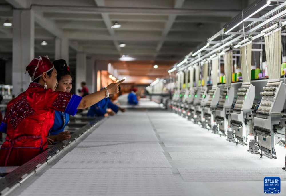 ??近年來,龍祿穎致力于探索苗繡的創(chuàng)造性轉(zhuǎn)化應用。她投入智能化苗繡生產(chǎn)設備,生產(chǎn)苗家風格的繡品,廣泛應用于墻布、掛畫、服裝等產(chǎn)品。婦女們用自己的雙手繡出了一片錦繡天地。