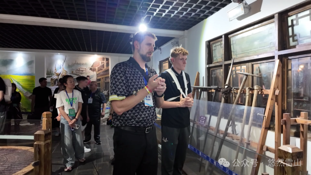 交流團(tuán)的第一站直奔西江苗族博物館。館內(nèi)陳列的古法織布機(jī)、記載遷徙史的圖文展板,讓習(xí)慣賽場節(jié)奏的青少年們放慢了腳步。