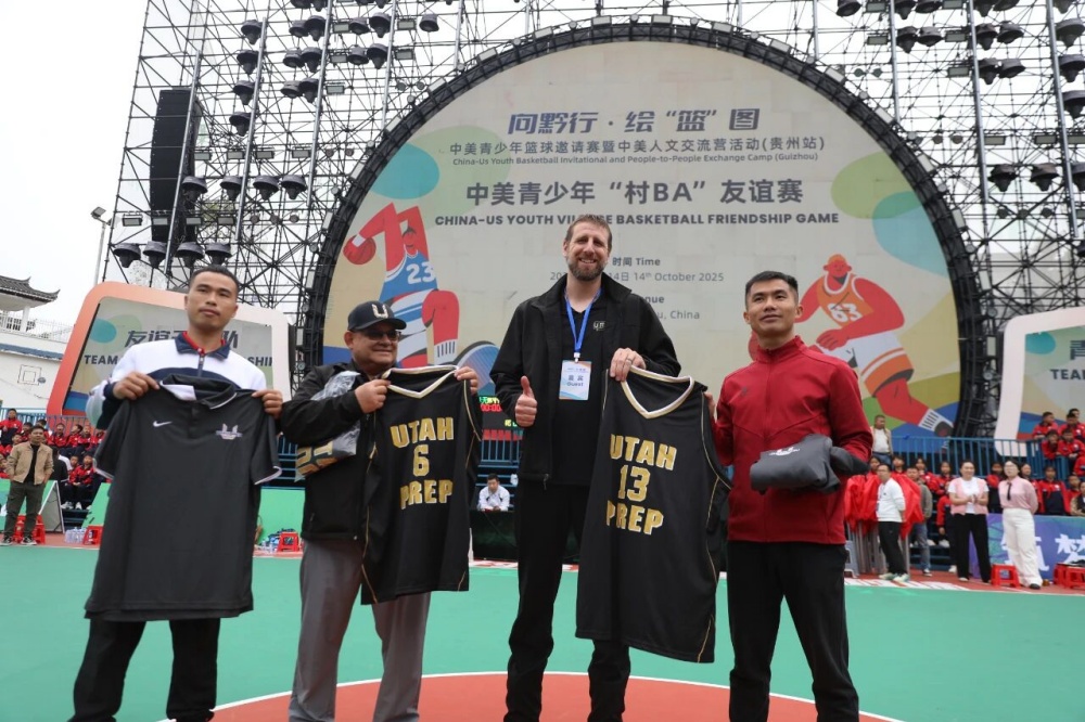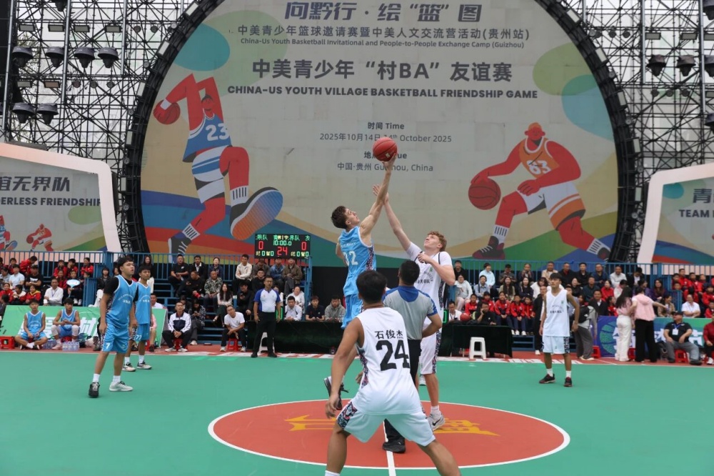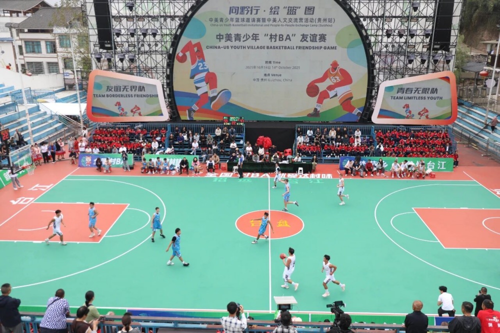 10月14日,中美青少年籃球邀請賽暨中美人文交流營活動走進貴州臺江“村BA”,來自美國的Utah Prep Academy籃球隊與貴州“村BA”代表隊采取混合組隊的形式,以籃球為媒,開展一場跨越國界的籃球?qū)υ捙c文化碰撞。