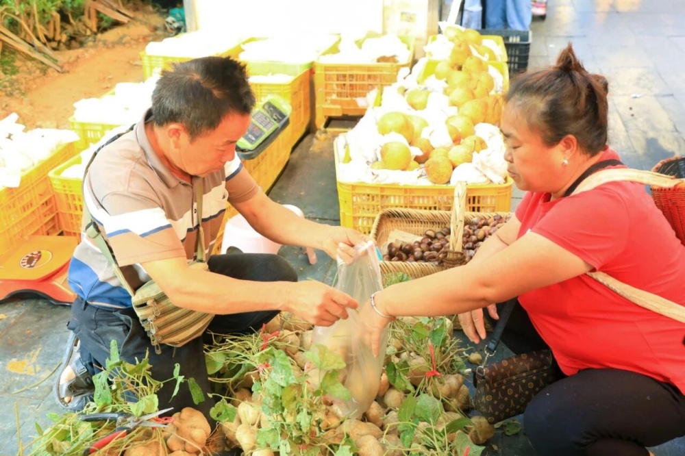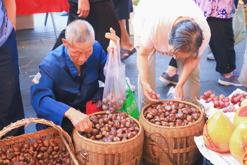 從田間剛收的嫩姜、林藪新采的板栗到裹著泥土芬芳的樅樹菌、碼放整齊的八月筍,再到透著清甜香氣的涼薯及水中暢游的稻花鯉……帶著劍河秋日氣息的山間好物匯聚于此,成為小城里最鮮活的秋日印記。