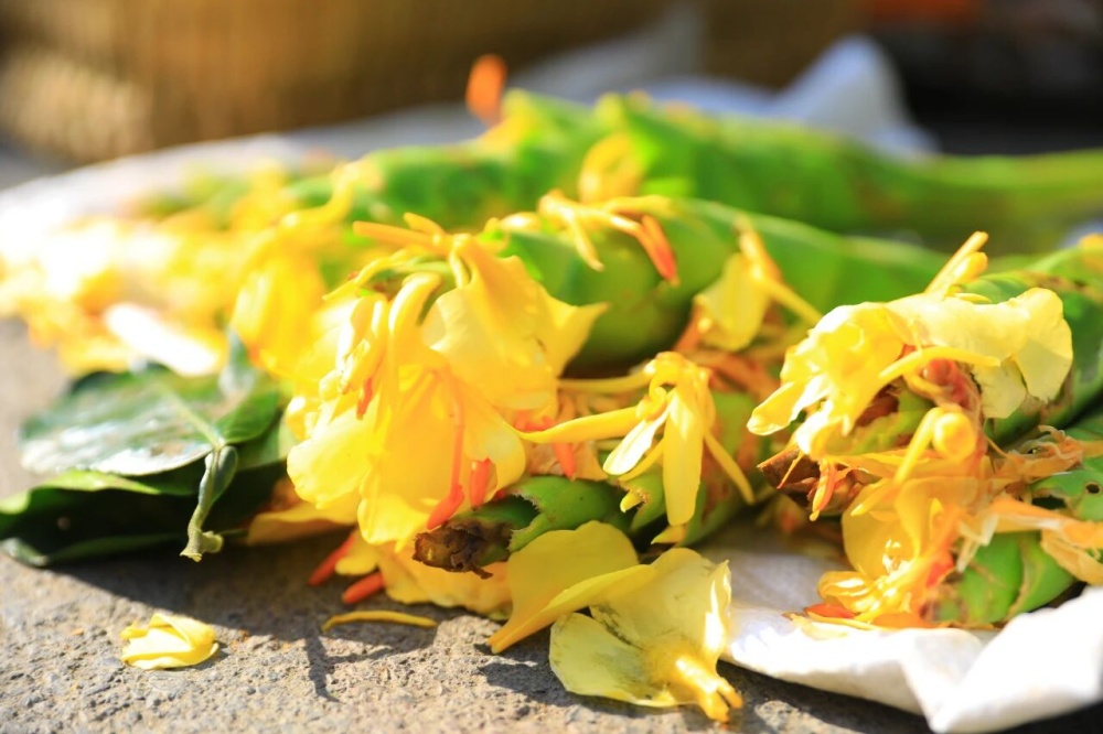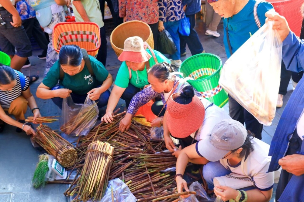“我這梨來自于柳川,酸酸甜甜的很受消費者歡迎?!睌傊鲗O德根指著滿筐梨,語氣里滿是自豪。在不遠(yuǎn)處的草果花攤前,盛開的草果花散發(fā)著獨屬于它的芳香,靜待顧客選購。攤主楊桂英說:“草果花一年就一季,八九月份開花,曬干收起來,煮雞、煮鴨、炒肉、燉豬腳都可以,香得很?!?/p>