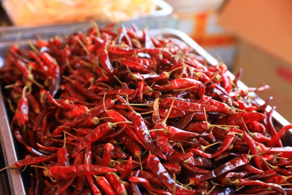 集市中段的“秋味小鋪”更顯熱鬧:攤前擺滿的板栗個個圓潤飽滿,遠(yuǎn)看似一塊褐玉,瑩亮有光澤;干辣椒擺滿攤位,椒皮火紅油亮,風(fēng)一吹,鼻尖縈繞著細(xì)碎椒香……人來人往中,前來“尋味”的市民黃銀蘭收獲滿滿?!斑@個時間段正值秋收,我們每年都要來市場上挑選菌子、九月黃等,好吃又實惠?!?/p>