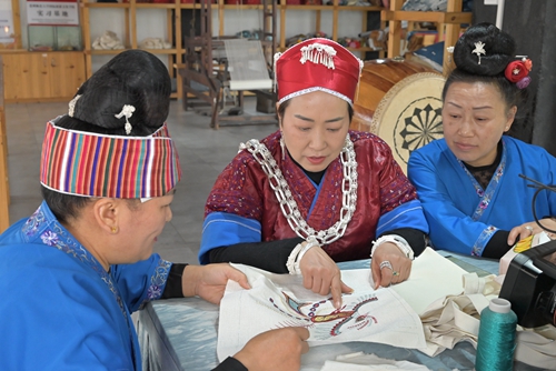 得益于數(shù)字化技術(shù)的賦能,該公司打破了只能生產(chǎn)旅游小商品、手工藝品、服裝飾品等小面積刺繡產(chǎn)品的局限,讓苗繡有了更大的發(fā)揮空間。龍宇向記者介紹,這種根據(jù)市場需求研發(fā)出的機(jī)繡設(shè)備,滿足了企業(yè)生產(chǎn)大型的苗繡產(chǎn)品,可以做成刺繡屏風(fēng)、刺繡墻布等室內(nèi)裝飾產(chǎn)品。苗繡產(chǎn)品有了豐富的載體后,市場競爭力進(jìn)一步增強(qiáng)。