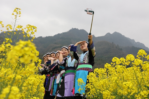3月17日,以“詩情田園麻江 畫意夢(mèng)境樂坪”為主題的壩芒鄉(xiāng)樂坪村第五屆油菜花文化旅游節(jié)開幕。千畝油菜花海迎春綻放,滿眼金黃,游客走進(jìn)花海,共赴一場(chǎng)花田盛宴。