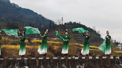 游客在樂坪壩區(qū)感受春天的氣息