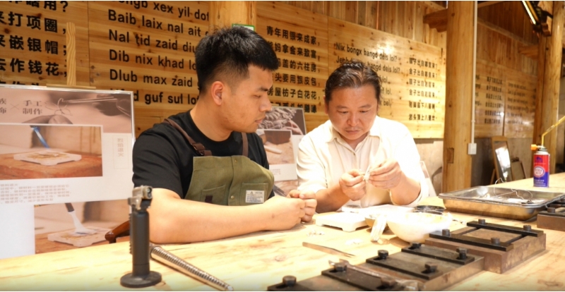 隨著研學(xué)基地的建立,每天源源不斷地有著游客、學(xué)者等慕名而來。通過這樣一種方式,能讓“苗族銀飾鍛造技藝”這門非遺技藝讓人熟知,讓人了解并去傳承,潘仕學(xué)很開心,同時(shí)他也希望有更多年輕人加入到其中來。