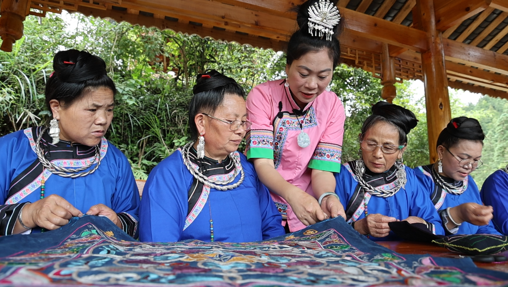 近日,記者走進(jìn)黎平縣茅貢鎮(zhèn)流芳村,蜿蜒的青石板路連接著整個(gè)村寨,省級(jí)非遺傳承人陸永江正在認(rèn)真地教繡娘們刺繡針法,繡娘們或是三五成群認(rèn)真討論繡片上的針法,或是埋頭刺繡。據(jù)悉,她們手中的繡品將用在大灣區(qū)定制的包包、服飾等手工藝品上,將給繡娘們帶來上千元的收入。