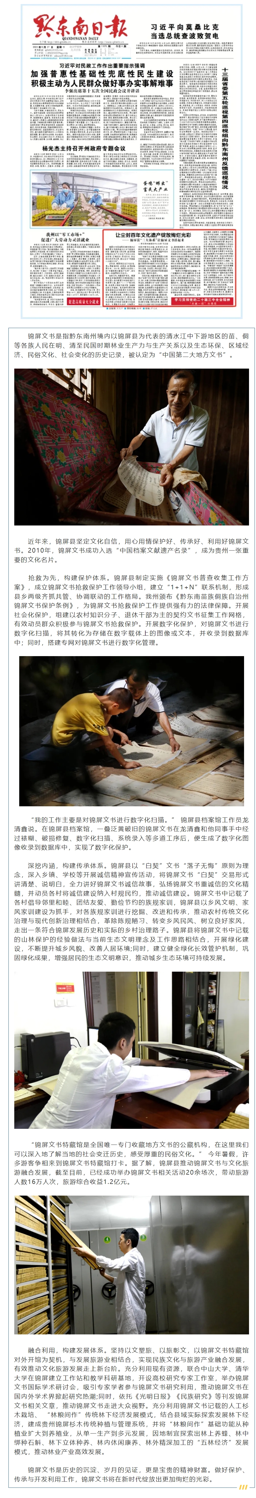 讓塵封百年文化遺產(chǎn)綻放絢爛光彩——錦屏縣“三大體系”讓錦屏文書活起來