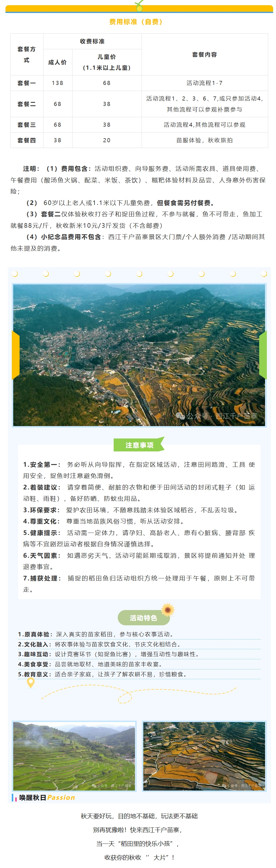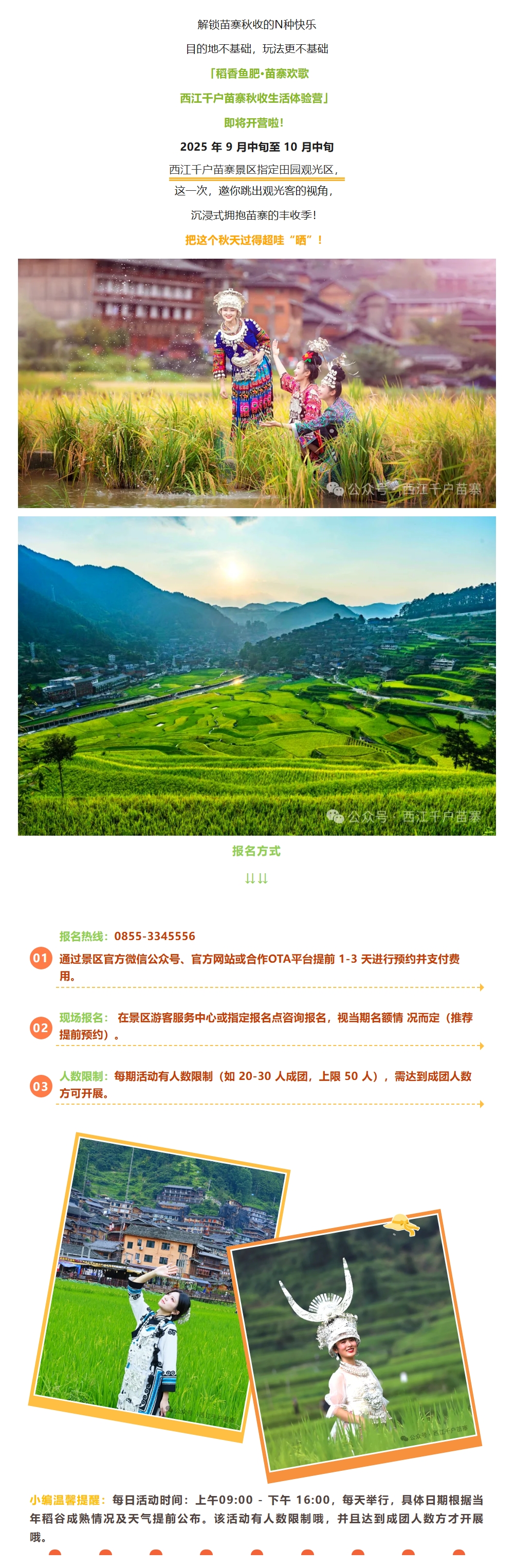 苗寨秋收不重樣:稻香魚肥·苗寨歡歌——西江千戶苗寨秋收生活體驗營開始啦!