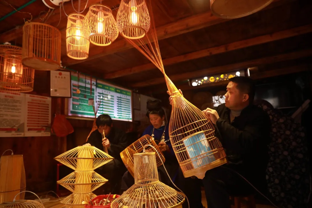 在非遺傳承上,丹寨涌現(xiàn)出了一大批優(yōu)秀的非遺項目代表性傳承人。苗族蠟染技藝傳承人楊乃金,自幼隨外婆和母親學習蠟染,如今她的作品屢次登上國際時裝周的舞臺。她不僅自己憑借精湛技藝讓蠟染走向世界,還積極引導兒子王海軍傳承這門技藝。王海軍作為年輕一代,思路開闊,善于融合現(xiàn)代傳播方式,希望通過互聯(lián)網(wǎng)讓更多人了解苗族蠟染文化。鳥籠制作技藝省級代表性傳承人王玉和,面對傳統(tǒng)大鳥籠銷路遇阻的困境,敏銳捕捉市場機遇,將鳥籠改造成鳥籠燈籠、書架、首飾等實用飾品,借助電商平臺實現(xiàn)“線上+線下”同步銷售,讓小小的鳥籠成為了致富的金鑰匙。芒筒蘆笙制作技藝縣級代表性傳承人楊通輝,堅守手工制作的溫度,面對機器制造的沖擊,始終堅信手工的無可替代。他制作的芒筒蘆笙不僅音色渾厚低沉,而且訂單不斷,年收入可達三四十萬。這些傳承人們用自己的堅守與創(chuàng)新,為非遺的傳承注入了源源不斷的動力。