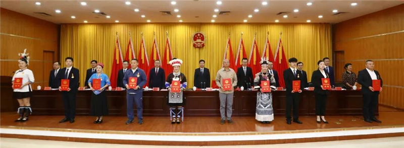 州委和州政府決定授予99人“黔東南州勞動模范”稱號、49人“黔東南州先進工作者”稱號。在熱烈的掌聲中,州領導為受到表彰的代表頒發(fā)榮譽證書。受表彰代表宣讀倡議書。